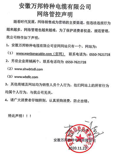 鄭重聲明:安徽萬邦特種電纜有限公司官方網站為:www_wanbangcable_com.keshilong.cn,除此之外無任何子網站或合作網站,其余均為假冒偽劣。電話:0550-7621728 13485756353 地 址:安徽省天長市滁州高新技術產業開發區經四路29號